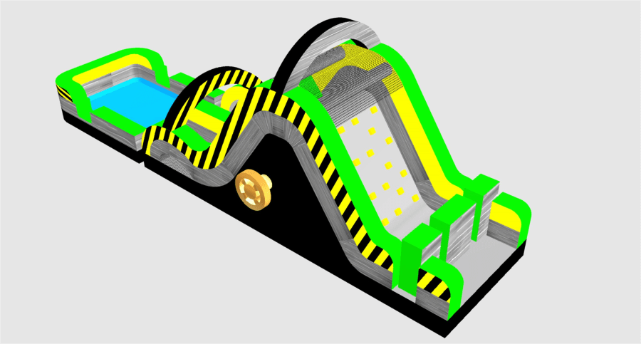 A steep dual-lane slide with bold caution styling. Use wet* or dry. Pairs with the 31ft Obstacle to create one of Adelaide’s only wet/dry obstacle courses.