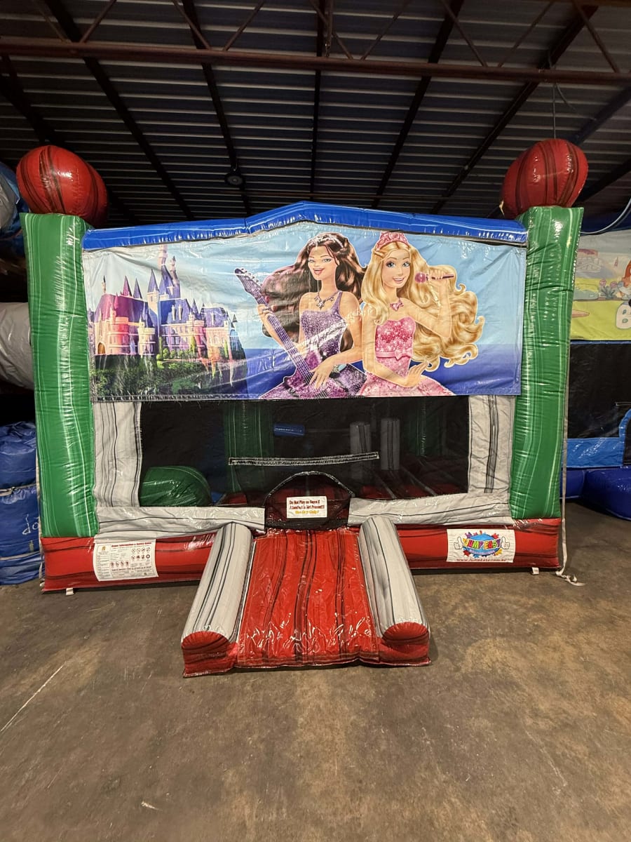 Features: Bounce area, inflated wall, inflated obstacles, stair climb, tall slide and basketball ring*.