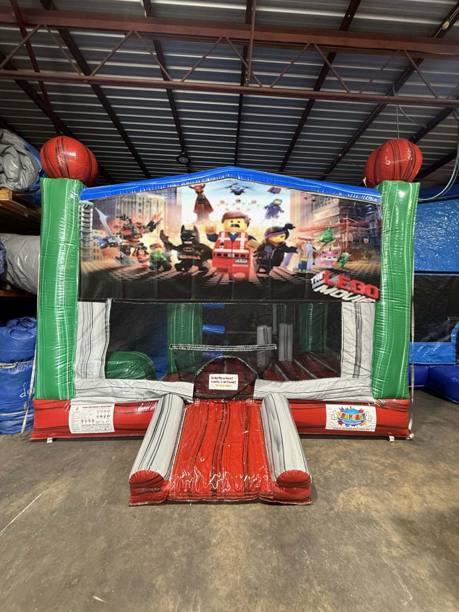 Features: Bounce area, inflated wall, inflated obstacles, stair climb, tall slide and basketball ring*.