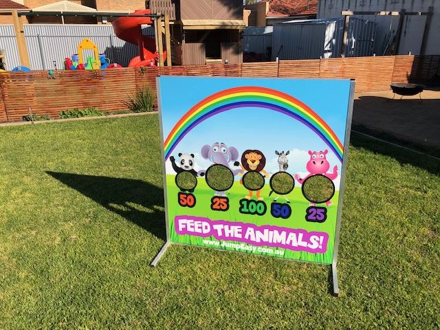Perfect for birthday parties, school events and community days, Feed the Animals suits indoor or outdoor setups and adds a light-hearted activity to any event. Quick to assemble and easy to transport.