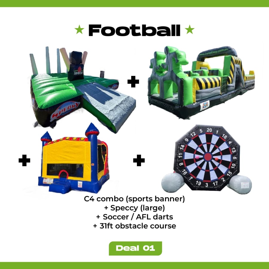 Football Deal 1 – Speccy Large, C4 Combo, Obstacle Course & Soccer Darts – OSHC Hire Adelaide Hills & South