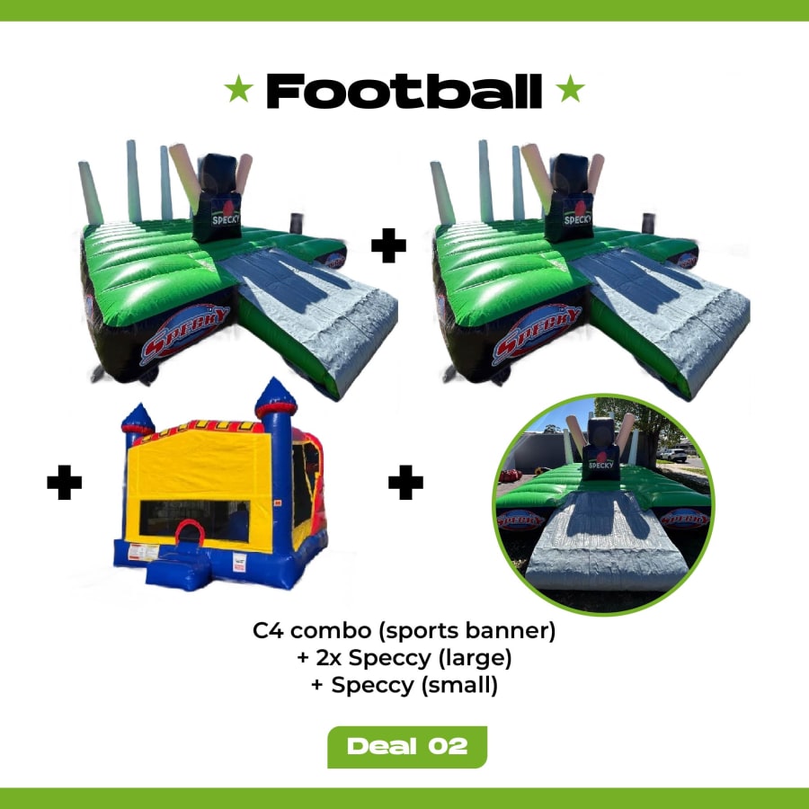 Football Deal 2 – 2 Large Speccy Inflatables, 1 Small Speccy & C4 Combo – OSHC Hire Adelaide Hills & South
